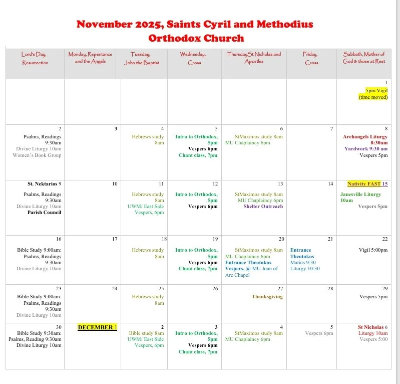Sunday 11/29: Matins 9 a.m. ,Divine Liturgy 10 a.m.